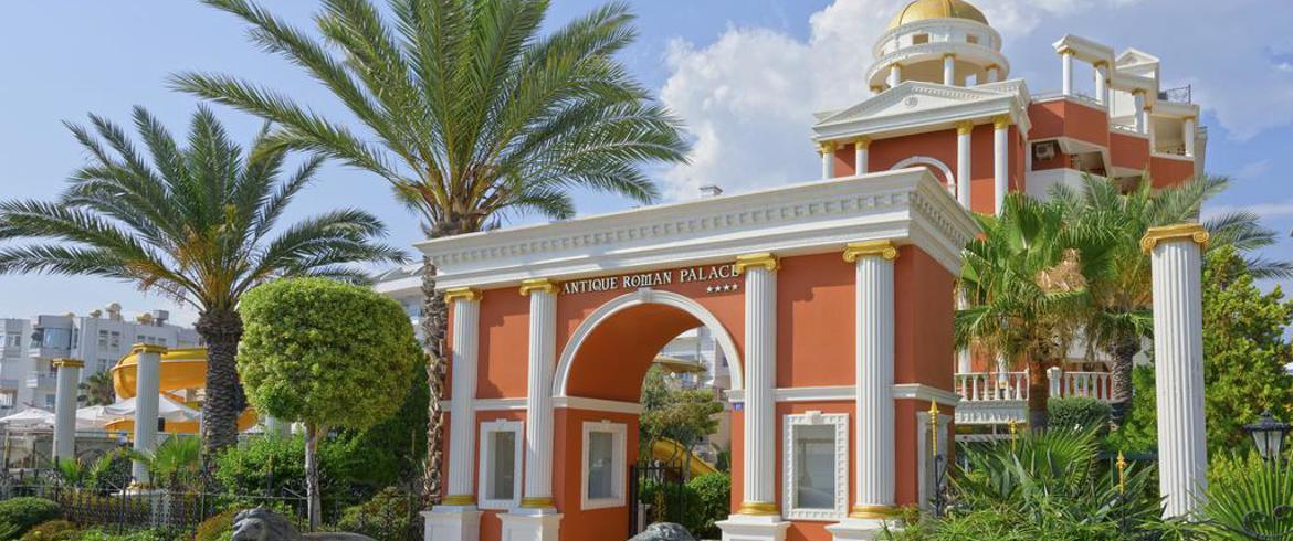 Hotel Antique Roman Palace се наоѓа преку улица од песочната плажа, во источниот дел на Аланија, во регионот Оба, на околу 3 км од центарот на градот. Хотелот располага со 113 соби и се состои од блок А и блок Б. За љубителите на прошетки покрај морето, до центарот води уредена променада со бројни содржини по пат.