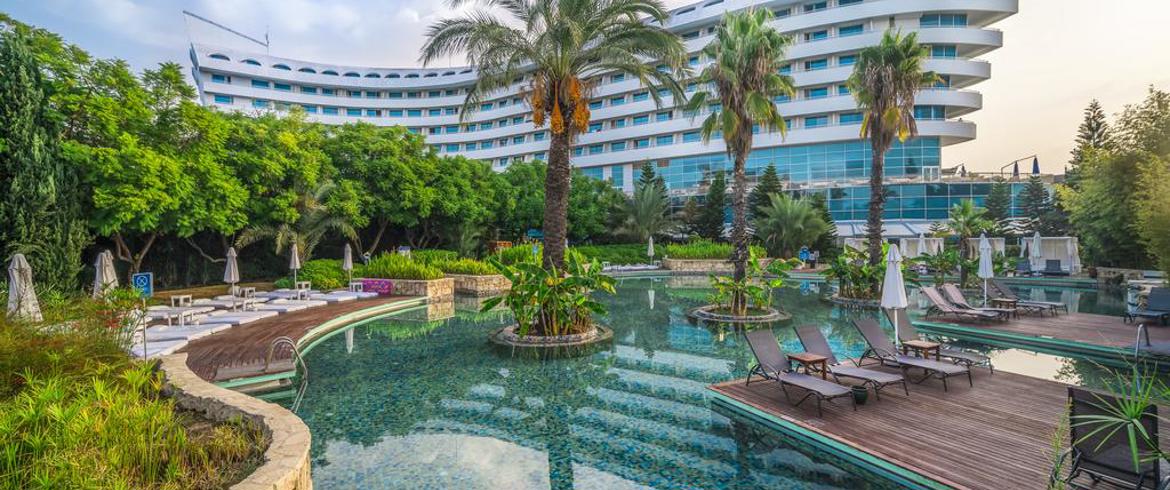 Локација: Хотелот се наоѓа во областа Лара, 10км од аеродромот во Анталија и 16км од центарот на Анталија.