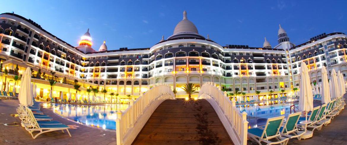 Содржина: Хотелот има главен ресторан со шведска маса, A’la Carte ресторани: Sultan – Турска кујна и Carpaccio – Медитеранска кујна, барови околу хотелскиот комплекс, Disco club, бар за закуски на плажа. Доктор, бебиситер, услуга за перење и сушење, фризер, телефон, факс, интернет, шопинг центар, рент а кар се услуги кои се доплаќаат. WI-FI интернет конекцијата во лоби, јавни места и соби е бесплатен.