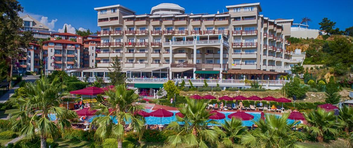 ЛОКАЦИЈА: Хотелот се наоѓа на една височинка, во срцето на луксузна градина на простор од 9.500м2. Оддалечен е само 35км од Аланија и 25км од Манавгат, во областа Окурчалар. Аеродромот е наокулу 90км од хотелот.