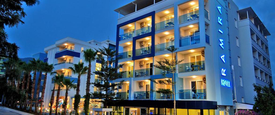 Локација: Хотелот Клеопатра Рамира 4 * се наоѓа во центарот на Аланија. Оддалечен е 125км од аеродромот во Анталија.