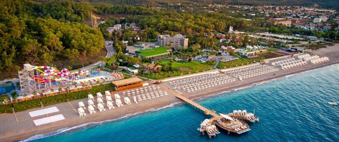 Содржини: Хотелот располага со главни и 3 a la carte ресторани (медитерански, морска храна – се доплаќа, додека Отоманската е бесплатна еднаш за време на престојот со резервација), 2 конференциски сали (60-300 луѓе), Интернет Wi-Fi, 6 барови, 2 надворешни и внатрешен базен, аква парк со 6 тобогани, турска бања, сауна, теретана, аеробик, аквабајк, пинг понг, одбојка на плажа, пикадо, музика во живо, анимација, детски базен, 6 детски тобогани, детско игралиште, детски клуб (4-12 години) . Со доплата: доктор, дадилка, масажа, фризер, моторизирани спортови на вода, билијард, моторизирани спортови на вода, сервис за перење и хемиско чистење.