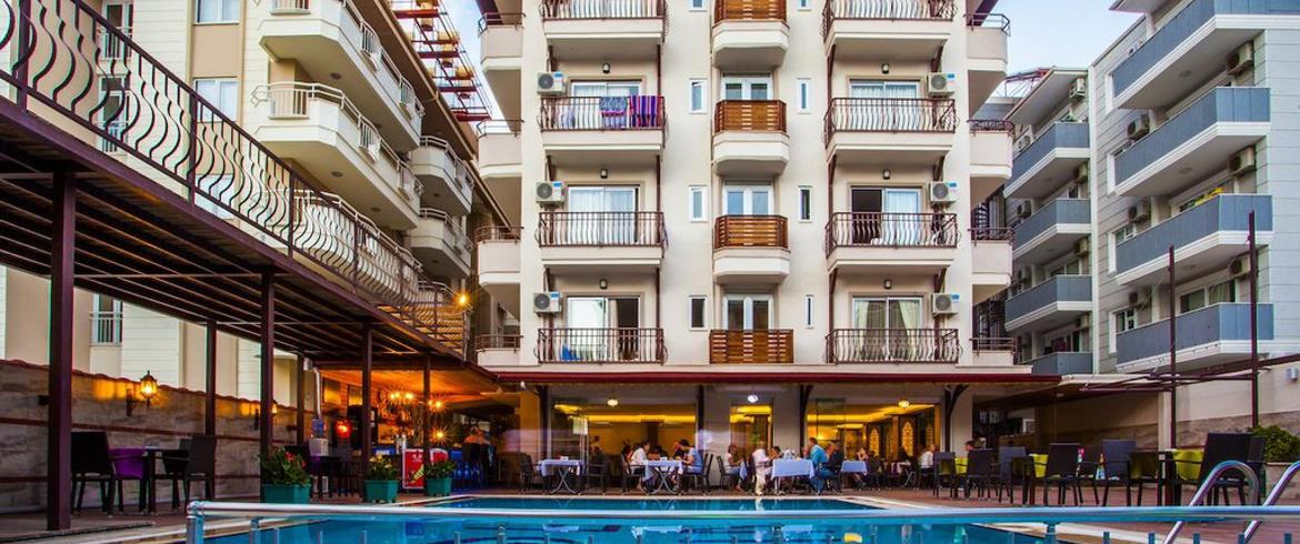 Содржина: Хотелот се наоѓа во центарот на Оба, недалеку од големиот трговски центар Алањум и Мигрос. Има главен ресторан, à la carte ресторан и 2 барови („Сервис базен“ и „Тајм бар“). Надворешен базен и детски базен, анимации и програми три пати неделно, ТВ соба, Wi-Fi интернет во фоајето (со ограничена брзина и број на корисници).
