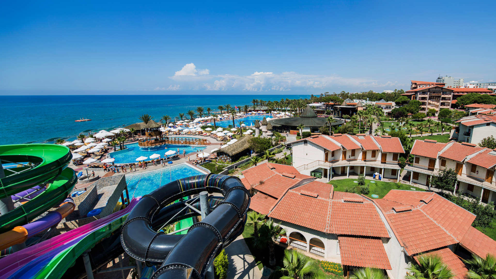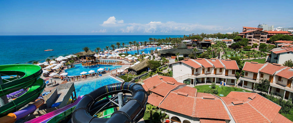 Содржини: Хотелот располага со главен и 2 a'la carte ресторани (италијански и кинески - бесплатно еднаш за време на престојот со претходна резервација), 3 конференциски сали (35-500 луѓе), бесплатен интернет, 6 барови, внатрешен базен, 3 надворешни базени, 6 тобогани , 2 тениски терени, осветлување на тениски терени, изнајмување тениска опрема, 6 фудбалски терени, кошарка, боче, одбојка и фудбал на плажа, пикадо, стрелаштво, пинг понг, теретана, сауна, спа центар, турска бања, аквабајк, аеробик, диско музика во живо, анимација , детско игралиште, детско мени, 2 детски клуба (мини 4-12 години и тинејџери 13-16 отворени од јуни до септември), 2 детски базени и 3 тобогани. Се доплаќа: бебиситерка, фризер, доктор, масажа, видео игри, билијард, куглање, часови по тенис, тениски терени во текот на ноќта, моторизирани спортови на вода, катамаран, сурфање (со лиценца), услуги за перење и хемиско чистење.