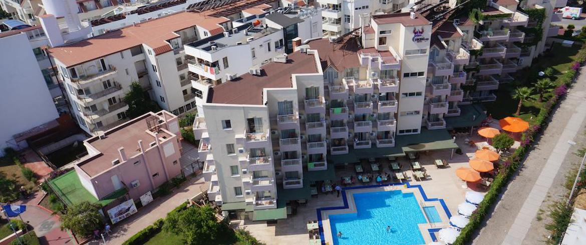 Локација: Хотелот е оддалечен 55 км од аеродромот во Анталија, се наоѓа во центарот на Кемер на брегот, а од плажата е одделен со шеталиште. Изграден е во 1992 година, а целосно реновиран во 2006 година. Се простира на површина од 1.500 м2.