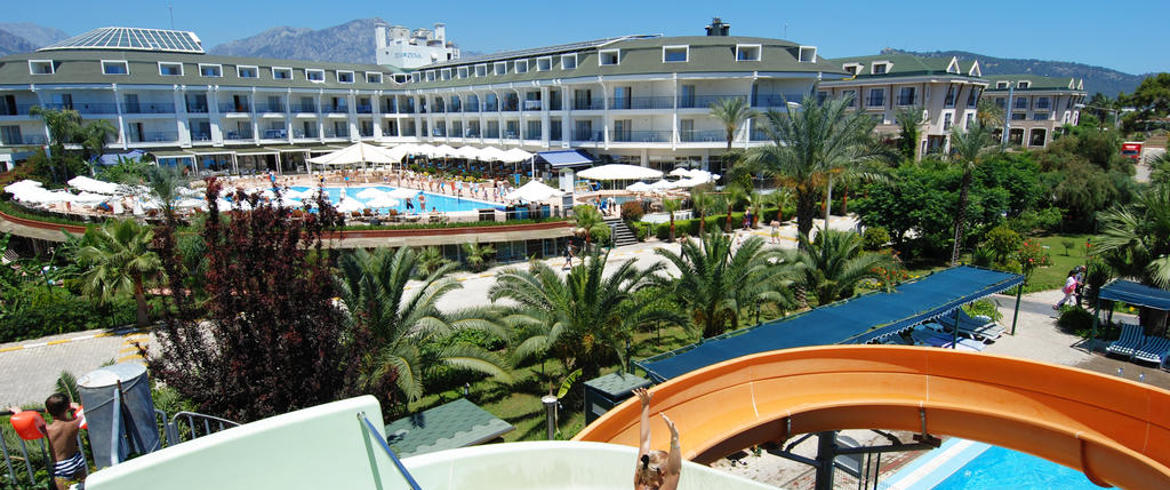 Локација: Хотелот се наоѓа на одлична локација веднаш до плажата во Кемер, опкружен со зеленило. Зафаќа површина од 17.000 во регионот Камјува, 7 км од градот Кемер, 70 км од аеродромот во Анталија. Хотелот располага со 214 соби.